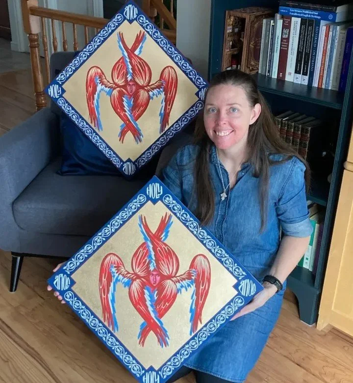 After my year of self-study in South Korea I was very eager to learn from Professor Tselingidis. My Master’s thesis was entitled, The Theological Presuppositions of the Orthodox Iconographer Based on the Stoglav Sobor (Moscow: 1551). Meanwhile, while taking my Masters degree in theology, and frequently visiting women’s monasteries (and writing and publishing my first book The Scent of Holiness), I began studying the technical art of iconography with a local Serbian iconographer, Dragan Pantelic. In the practical application of this sacred artform I found the place where everything I most loved in my childhood was united. I discovered the one true mechanism to fuse my love of art with sacred imagery. I haven’t stopped painting since, 17 years later.